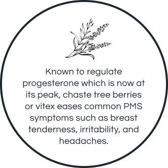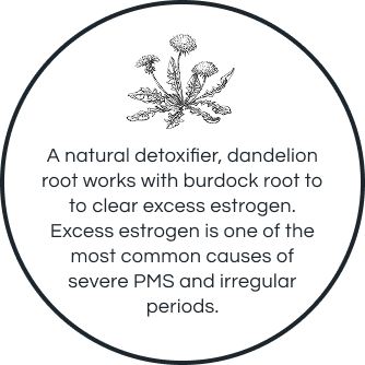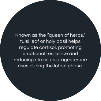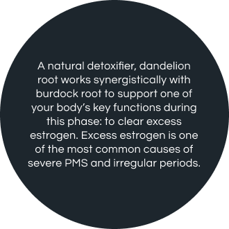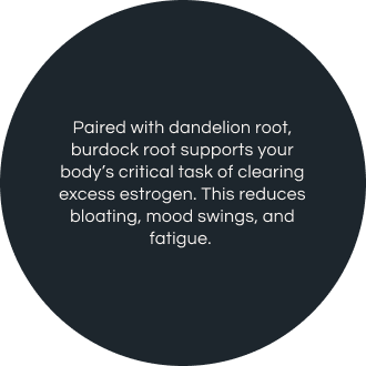 As you enter the more reflective and grounded portion of your luteal phase, this calming blend helps you center. For centuries, women have used vitex to support overall well-being during hormonal changes, nurturing calm and emotional steadiness. Dandelion root and burdock root support your body's natural detoxification pathways, offering a sense of lightness. The warm touch of cinnamon enhances the other herbs and supports a healthy metabolism. Let this blend help you feel centered, grounded, and in sync with your body as you approach the end of your cycle.