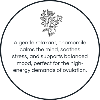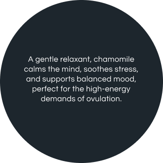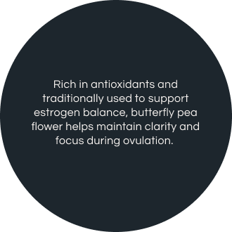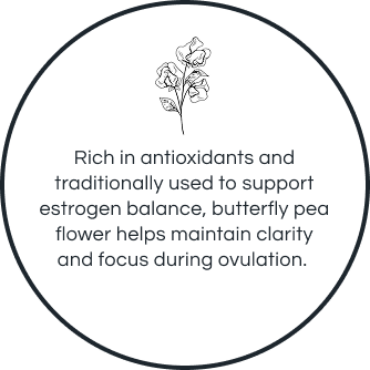This stimulating blend of red clover, peppermint, chamomile, dong quai, rose petals, and butterfly pea flower works in ecstatic harmony with your body at the peak of your energy.Red clover, rich in phytoestrogens, supports your body's natural hormonal rhythms, while potent antioxidants from rose petals and butterfly pea flowers promote radiant skin.Chamomile, with its calming and uplifting qualities, helps keep your mood elevated, allowing you to embrace this powerful phase of your cycle with confidence and vitality.