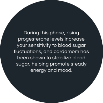 As you transition from peak energy to a more grounded state, this harmonizing blend offers balance and warmth, easing you into your luteal phase. The powerful adaptogens ashwagandha and licorice root support your body's natural stress response, promoting a sense of peace, while maca delivers steady, revitalizing energy. Cardamom's gentle spice supports healthy digestion and encourages a balanced mood, leaving you feeling grounded, centered, and ready for your next phase.