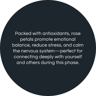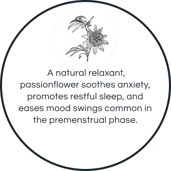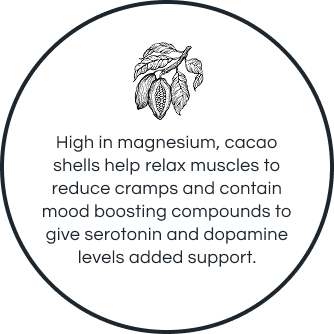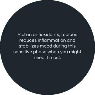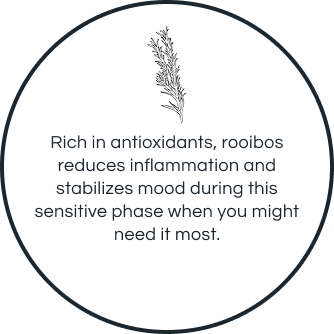 As your body prepares for menstruation, this supportive blend provides a calming embrace. Vitex helps support your body during hormonal fluctuations, encouraging emotional steadiness, while cacao uplifts your mood and promotes well-being. Passionflower inspires a calm mind, fostering emotional balance, while rooibos, rich in antioxidants, helps you feel centered and resilient. Together, these powerful ingredients work in harmony, grounding you with a sense of calm and ease as you transition into menstruation.